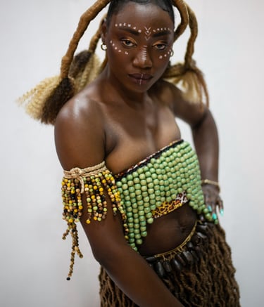 Minha experiência pessoal e ancestral é o ponto de partida de tudo que crio, e é daí que emergem minhas narrativas, minha estética para me expressar e fomentar Belezas, Resgate Histórico e Negócios de Impacto.