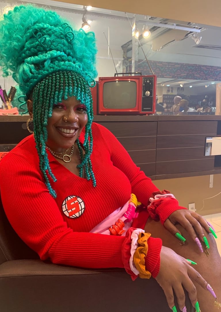 Diva Green é trançadeira, pesquisadora, designer de moda, produtora cultural e mercadora.