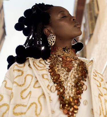Minha experiência pessoal e ancestral é o ponto de partida de tudo que crio, e é daí que emergem minhas narrativas, minha estética para me expressar e fomentar Belezas, Resgate Histórico e Negócios de Impacto.