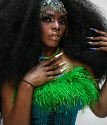 Diva Green é trançadeira, pesquisadora, designer de moda, produtora cultural e mercadora.
