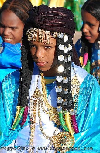 Flickr: Ibrahim AL Agouri|Young girl Tuareg se refere a um grande grupo étnico berbere, tradicionalmente pastores nômades do deserto do Saara (norte da África), conhecidos como "homens livres" e que falam línguas berberes (Tamasheq), famosos por seu véu azul, controle de caravanas e cultura rica, vivendo hoje em países como Mali, Níger, Argélia, Líbia e Burkina Faso
