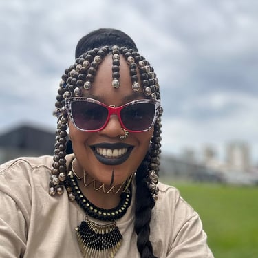 Foram as tranças que me mostraram que meu corpo é político, que minha existência é uma reivindicação em si — e que o bem viver não é concessão, mas direito. Cada trança que fiz, cada penteado, cada adorno… tudo isso me ensina a ler o mundo de outras formas. Em nossas estéticas, percebo narrativas vivas que carregam sabedorias que tentaram e, ainda tentam apagar. Mas resistimos e existimos porque nos reatamos e nos retrançamos, como os fios que seguramos entre as mãos.