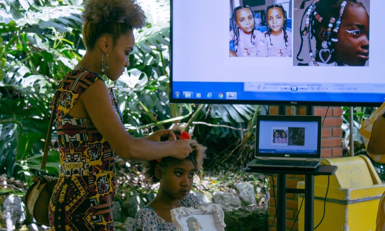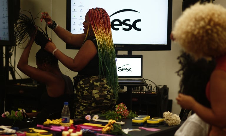 É também o que motiva ações como as oficinas de tranças para crianças, que unem estética e identidade. Previstas pela Lei 10.639, que torna obrigatório o ensino da história e cultura afro-brasileira nas escolas, essas vivências contribuem para a formação de uma autoestima saudável e para o combate ao racismo desde a infância.